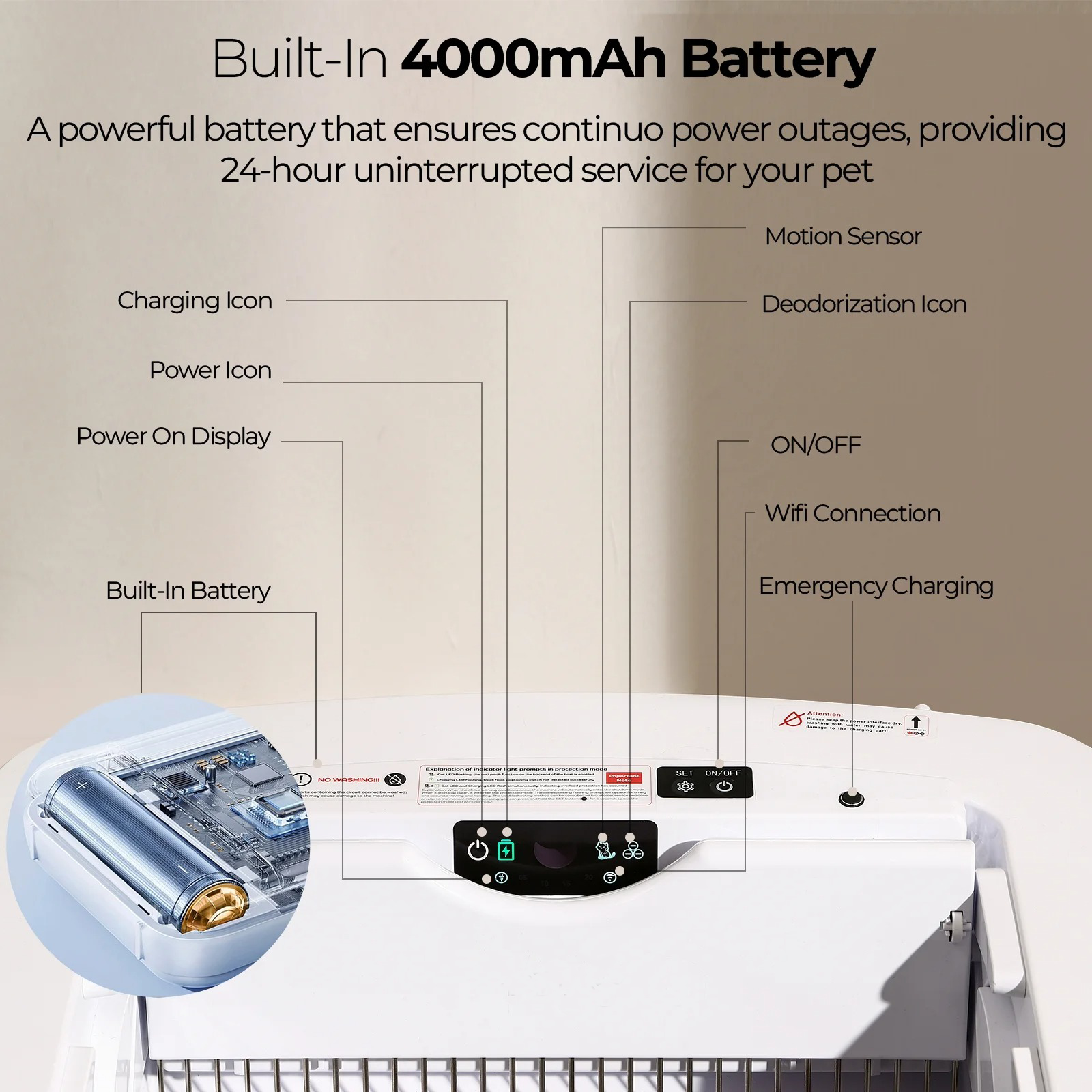 - WiFi and app control for monitoring and odor management.