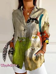 Women's Cute Cat Art Print Casual Crew Neck Sweatshirt