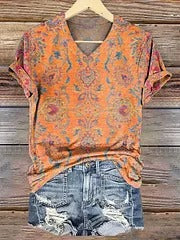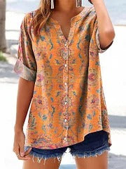 Women's Retro Ethnic Totem Art Pattern Print Casual Cotton And Linen Shirt
